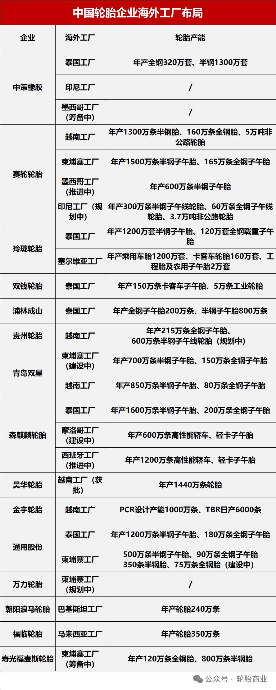 目前,轮胎企业海外产能已占据主导地位。许多企业在东南亚、欧洲等地设立了生产基地,这些基地不仅能够降低生产成本,还能更快速地响应市场需求。生意模式在海外和在国内差不多,企业依然需要面对市场竞争、产品质量和客户关系等问题。然而,海外生产的优势在于更接近目标市场,减少了运输时间和成本。最主要的是规避双反带来的冲击。