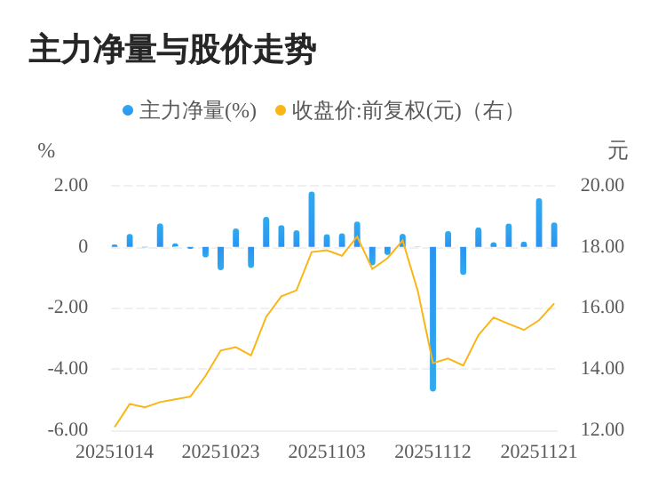 11月24日主力(dde大单净额)净流入2571.12万元,涨跌幅为3.53%,主力净量(dde大单净额/流通股)为0.80%,两市排名97/5168。