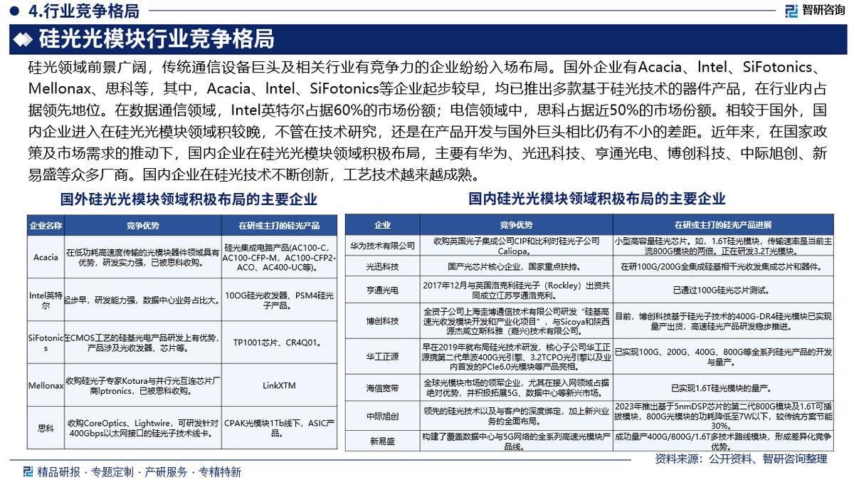 《2026-2032年中国硅光光模块行业市场竞争现状及投资机会研判报告》基于最新、最全的中国产业链数据,融合权威官方统计、深度企业调研、资本市场洞察及全球信息,通过严格的智能处理和独家算法验证,确保分析结论高度可靠、透明且可追溯。