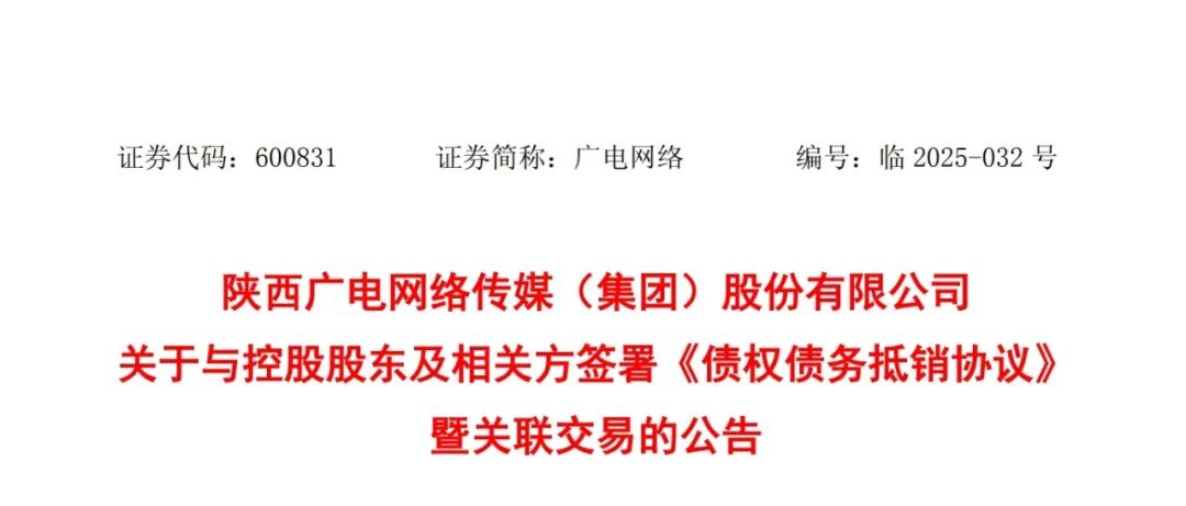 12月2日,陕西广电网络(维权)发布公告称,公司与控股股东陕西广电融媒体集团有限公司(简称“广电融媒体集团”)及陕西建工集团股份有限公司(简称“陕建股份”)等相关方协商一致,根据债权债务情况,共同签署《债权债务抵销协议》。