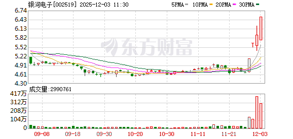 银河电子再度涨停,4个交易日内录得3个涨停,累计涨幅为39.61%,累计换手率为80.28%。截至10:22,该股今日成交量2.53亿股,成交金额15.48亿元,换手率22.59%。最新A股总市值达73.44亿元,A股流通市值72.94亿元。