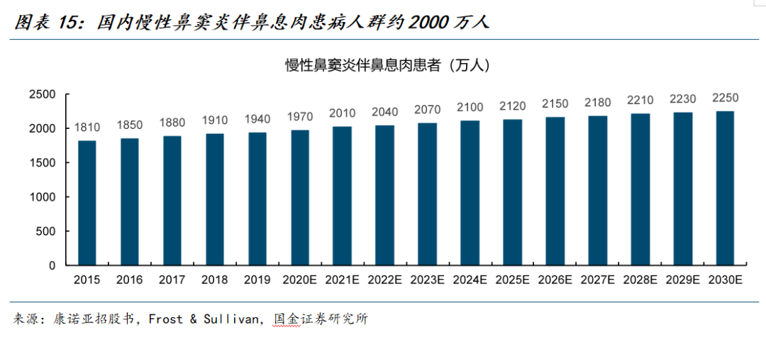 (2)CRSwNP:IL-4R单抗率先开启生物制剂疗法,可拓展空间巨大