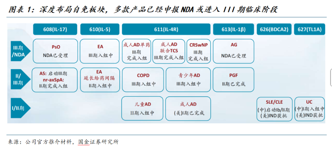 (一)深度布局自免行业,多管线即将步入商业化收获期
