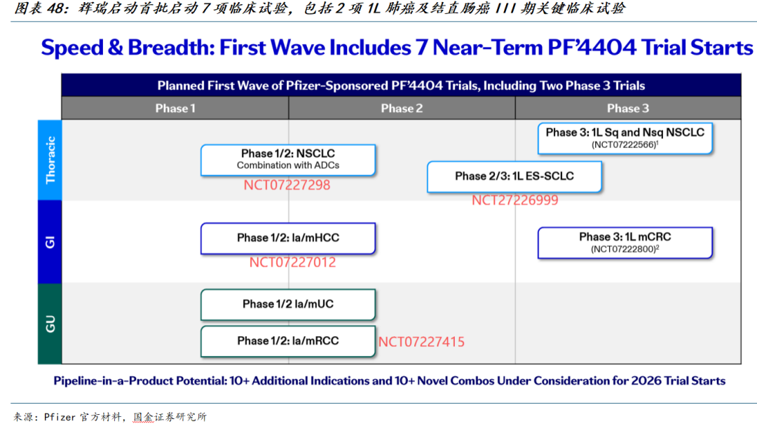 肺癌:①1L NSCLC(涵盖鳞状和非鳞状)的III期临床(NCT07222566);②联用ADC针对NSCLC的I/II期临床(NCT07227298);③头对头Atezolizumab(PD-L1单抗)治疗广泛期SCLC的II/III期临床(NCT07226999)。