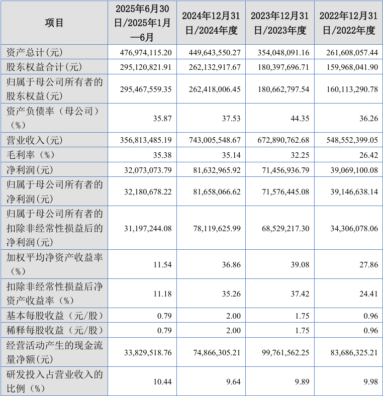报告期内,发行人营业收入分别为5.49亿元、6.73亿元、7.43亿元、3.57亿元,对应归母净利润分别为3914.56万元、7157.64万元、8165.81万元、3218.07万元。