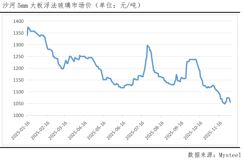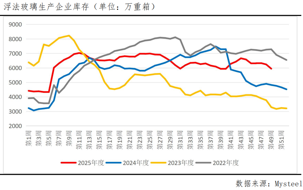 决定价格方向的最重要力量在于需求,而占玻璃需求最大比例的地产领域需求正面临双重压力:一是房企资金紧张导致竣工端玻璃采购需求同比明显下滑;二是北方地区逐步进入冬季低温停工阶段。截至12月初,全国玻璃深加工企业订单天数虽小幅回升至10.1天,但仍处于近年同期最低水平。订单匮乏导致下游企业普遍谨慎,这使得往年在年末出现的季节性补库行情在今年大概率落空。