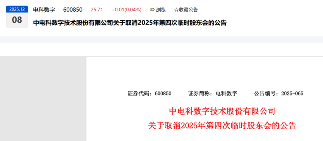电科数字(股票代码:600850)的一件“人事变动”导致“会议取消”的事。
