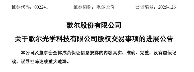 本次交易的顺利完成,不仅优化了歌尔光学的股权结构与资本配置,更助力其夯实了在光学领域的研发与市场拓展基础。未来,歌尔股份将继续聚焦自身核心业务发展,而歌尔光学也将在多元化股东的支持下,进一步深耕光学产业链,为行业发展贡献更多力量。