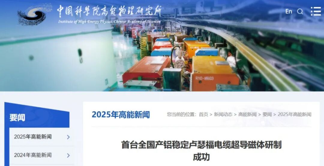 近日,由中国科学院高能物理研究所(以下简称“高能所”)牵头的科研团队在超导磁体技术领域取得突破性进展,成功研制出首台基于全国产铝稳定卢瑟福超导电缆的螺线管超导磁体,并顺利通过专家组验收。该磁体核心电缆由金杯电工旗下子公司统力电工承担研制。