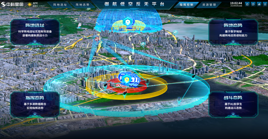 智能推演 + 秒级响应,解决反制滞后问题:平台内置 AI 智能选址引擎和智能体对抗系统,可通过信号包络分析、毁伤效能仿真等进行战术推演,提前优化布防方案,实现 “未战先演,布防即最优”。在实战中,依托高效指控数据链,能快速开展反制效能分析,灵活运用多种手段,完成 “探测 - 识别 - 反制” 的秒级闭环。例如在九三阅兵等重大活动中,其可快速处置低空威胁,实现零差错护航。