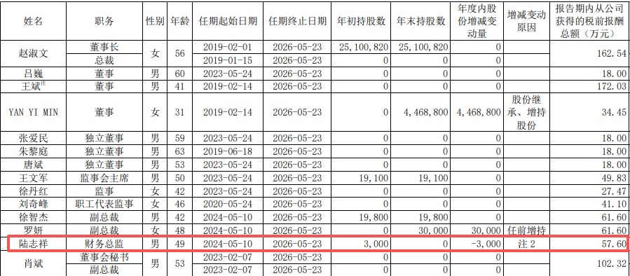 根据该公司2024年年报披露,陆志祥先生2024年度从公司获得的税前报酬总额为57.6万元。