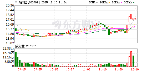 中源家居再度涨停,5个交易日内录得3个涨停,累计涨幅为30.81%,累计换手率为53.72%。截至10:08,该股今日成交量1766.41万股,成交金额3.37亿元,换手率14.12%。最新A股总市值达24.84亿元,A股流通市值24.65亿元。