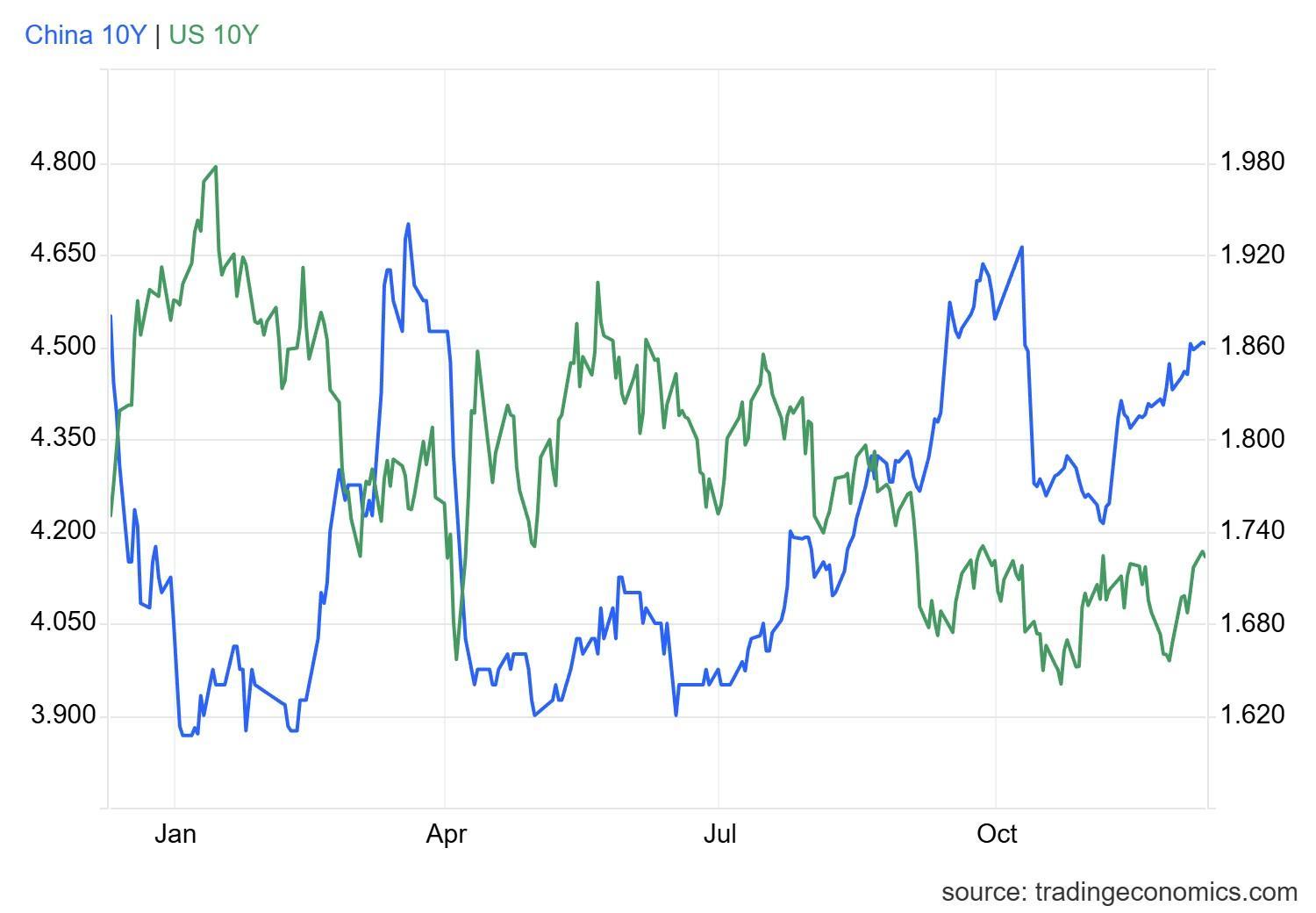 截至12月8日,中国二年期国债收益率为1.40%,中国十年期国债收益率为1.85%。