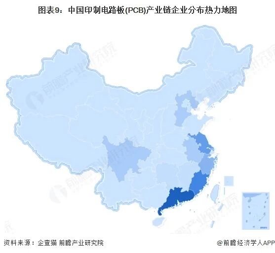 从印制电路板(PCB)产业链企业区域分布来看,我国印制电路板(PCB)企业分布较为集中,主要分布于经济较为发达的东部沿海地区,以广东省、福建省和江苏省为代表。
