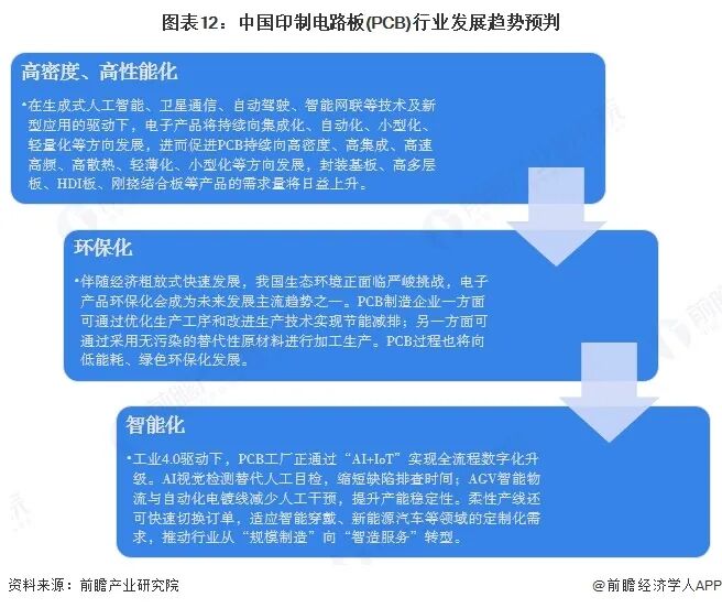 在生成式人工智能、卫星通信、自动驾驶、智能网联等技术及新型应用的驱动下,印制电路板(PCB)产品不断在向高密度、高集成、高速高频等方向发展,行业内企业也在不断提升技术水平、提高产品性能,从而顺应下游电子产品集成化、自动化、小型化的发展趋势。同时,随着工业4.0的深入推进,PCB工厂通过“AI+IoT”实现全流程数字化升级,推动行业从“规模制造”向“智造服务”转型。