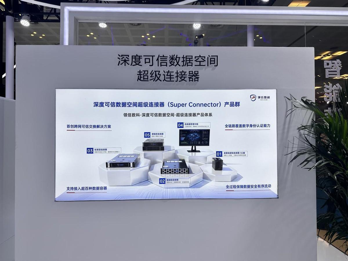 本次参展,广州数科集团以“数智技术全面赋能城市高质量发展”为主线,集中展出了一系列前沿产品与成功案例。领信数科重点展示了自身核心产品之一——深度可信数据空间超级连接器,吸引了众多与会领导与专业观众的关注。