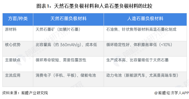 根据原材料的来源分,石墨负极材料可分为天然石墨负极材料和人造石墨负极材料两大类。二者在性能、成本和应用场景上具有一定的差异。