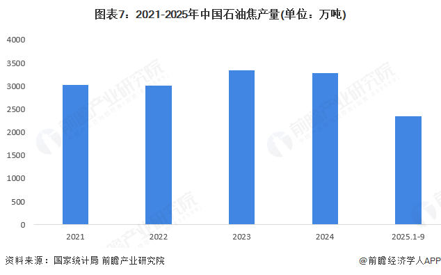 2024年全国石油焦累计产量为3286.3万吨,同比下降1.7%。2025年1-9月中国石油焦累计产量为2342.9万吨,同比减少4.7%。