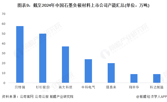 截至2024年,从行业内主要企业的产能情况看,贝特瑞、杉杉股份、尚太科技、中科电气、璞泰来等均在20万吨以上,以下7家企业合计产能超200万吨。