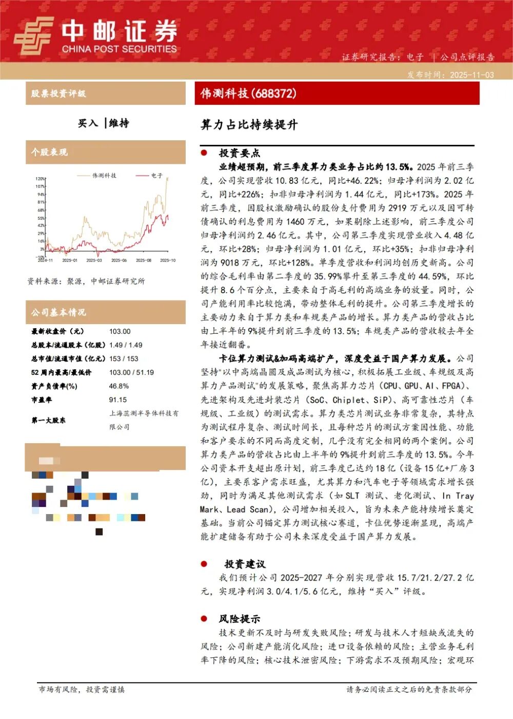 公司战略清晰,聚焦高算力(CPU/GPU/AI)、先进封装及高可靠性(如汽车电子)芯片的测试需求。受益于国产替代和新能源汽车崛起,这些高端测试市场成长空间巨大。公司凭借前瞻性布局,已切入众多国内顶级客户供应链,并确保了高端测试设备的交付,产能具备行业领先潜力。