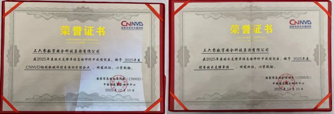 360获得由国家信息安全漏洞库(CNNVD)与中国信息安全测评中心授予的两项荣誉