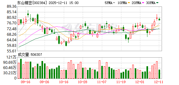 证券时报·数据宝统计,截至发稿,东山精密收盘价为78.76元,下跌2.25%,本期筹码集中以来股价累计上涨4.93%。具体到各交易日,5次上涨,4次下跌。