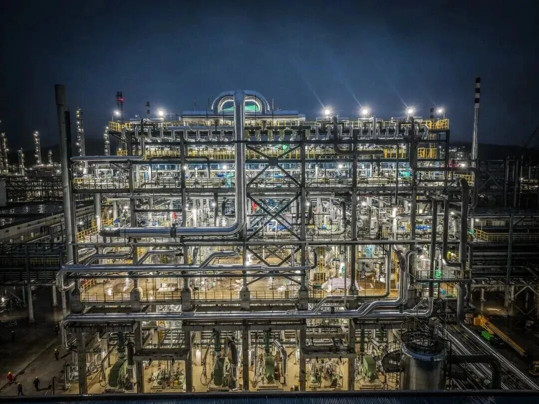 2025年9月26日,装置高标准通过中交验收,为后续的设备调试与试生产奠定了基础;2025年10月22日,一次压缩机完成机械运转测试(MRT),关键设备的性能得到验证;进入11月,项目推进节奏进一步加快,11月27日完成二次机柱塞精准安装,11月30日顺利完成装置系统置换、乙烯联运、气密检查等关键环节,全方位确保装置具备投料条件;最终在12月8日,装置成功产出合格产品,用高效的建设进度与过硬的工程质量,诠释了“联泓速度”与“联泓品质”。