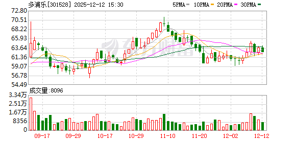 证券时报·数据宝统计显示,多浦乐今日收盘价为62.52元,下跌1.73%,日换手率为2.54%,成交额为5116.35万元,全天主力资金净流出180.35万元,近5日该股累计上涨2.24%,近5日资金合计净流出13.61万元。