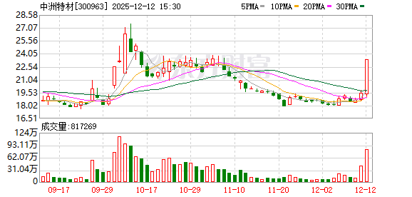 中洲特材今日涨停,全天换手率28.24%,成交额17.65亿元,振幅24.02%。龙虎榜数据显示,机构净卖出57.58万元,营业部席位合计净买入1.51亿元。