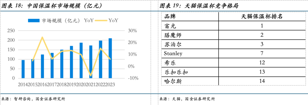2.3.保温杯内销:消费升级提质放量空间广阔,功能价值与渠道变革共驱增长