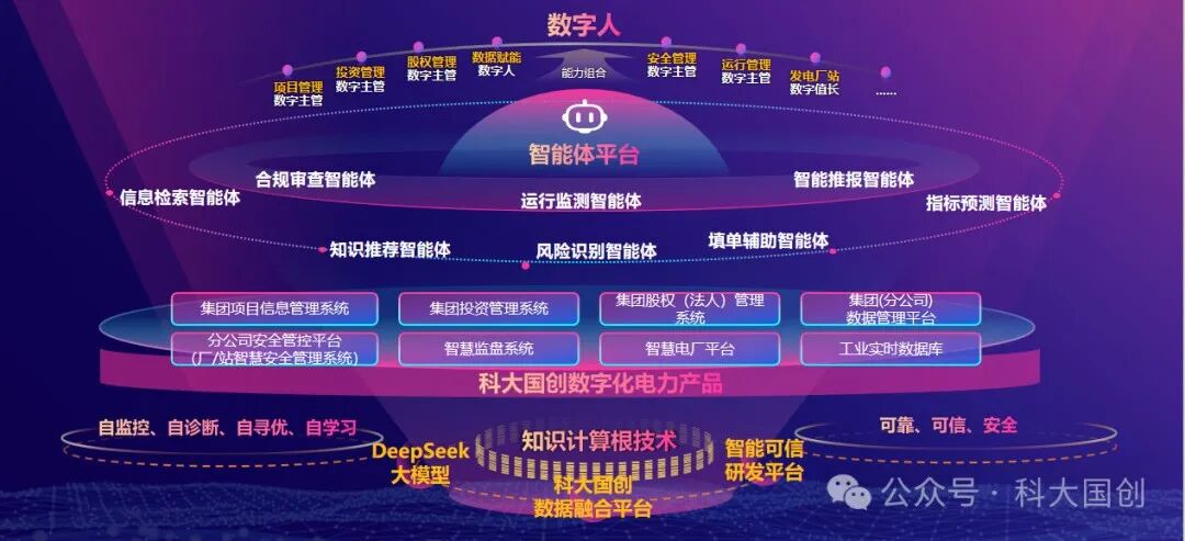 在“人工智能+”时代,科大国创积极引领行业变革,依托行业经验深挖发电企业“有数难找、合规审查费时耗力、状态异常触发滞后、设备故障诊断有经验无参考”等效能痛点,研发电力智能体,打造了运行监测智能体、合规审查智能体等一系列智能体,通过数字值长良好的交互与处理能力,完成发电厂智慧管理。