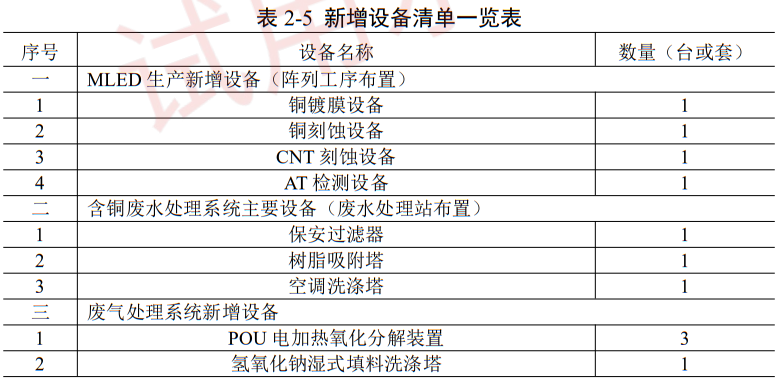 根据项目环评报告显示,该项目总投资约1.86亿元,占地面积为1125平方米,项目拟在现有LTPS TFT-LCD阵列工序基础上新增过孔刻蚀、Cu镀膜及Cu刻蚀工艺,新增设备阵列玻璃基板月投入量为0.6万片,用于生产MLED显示器件。