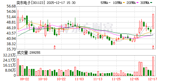 奕东电子今日涨停,全天换手率18.13%,成交额15.34亿元,振幅15.24%。龙虎榜数据显示,机构净买入9.30万元,深股通净卖出4511.38万元,营业部席位合计净买入1.18亿元。