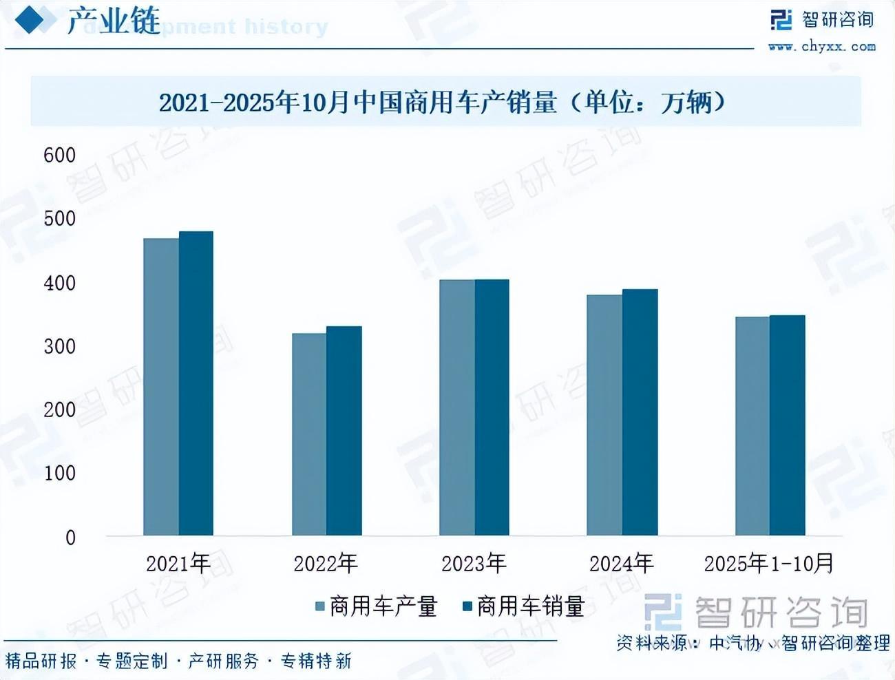 在商用车领域,减速器的需求核心在于重载和高可靠性,近年来自动变速器普及与新能源转型共同驱动了该领域产品的结构性升级。一方面,传统燃油商用车为适应长途运输、工程作业等重载场景,多采用多挡位减速器;随着物流行业对运输效率及燃油经济性的要求不断提高,商用车自动变速器的渗透率持续上升,进而拉动了与之匹配的专用减速器需求。另一方面,新能源商用车(包括纯电动、氢燃料电池等)发展加速,在城市配送货车、环卫车等行驶路线固定、启停频繁的细分场景中,对减速器的耐用性与传动效率提出了独特要求,正推动商用车减速器向轻量化、集成化方向转型,例如采用铝合金壳体以降低整车能耗的应用比例正在逐步提升。当前,行业增长基础稳固。数据显示:2025年1-10月,商用车产销分别完成345.6万辆和347.9万辆,同比实现约10%和9%的显著增长,为汽车减速器行业在商用车领域的持续发展注入了明确动能。