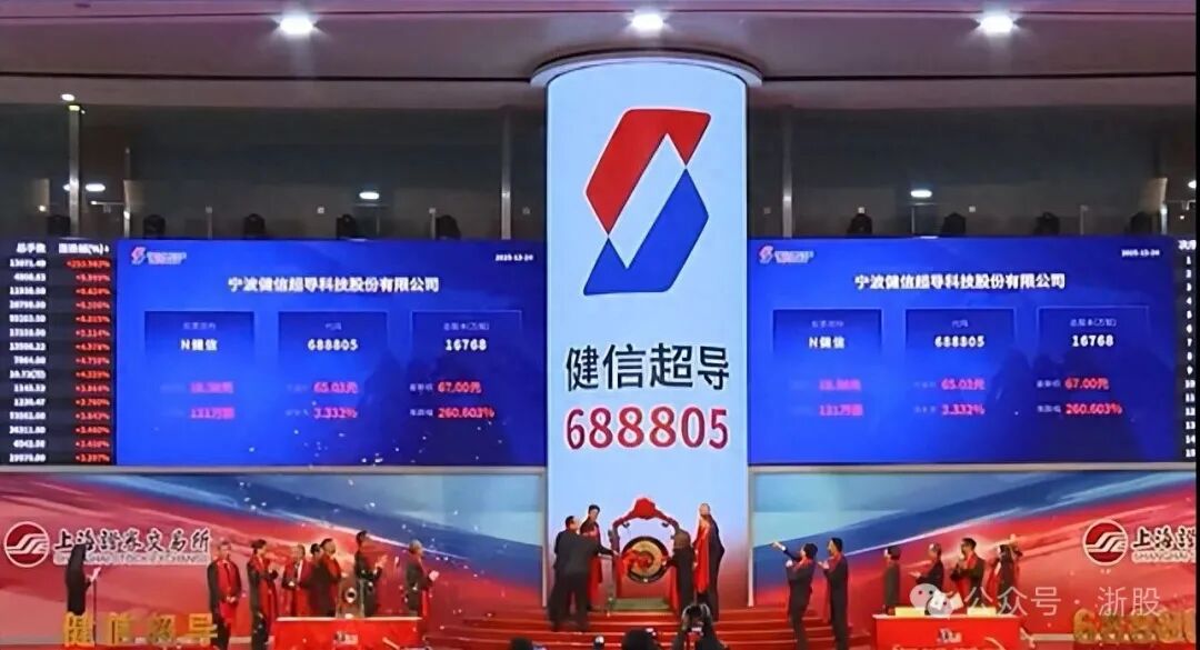 12月24日,来自宁波慈溪的健信超导在科创板上市,今年浙江A股IPO公司锁定17家,与2024年持平,上市公司总量达731家,继续位居全国第二。