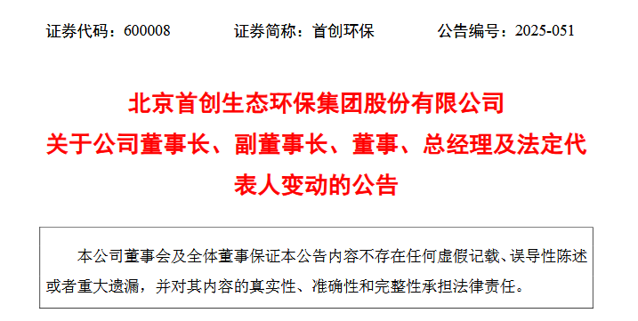 12月25日,首创环保公告,公司召开临时会议,因工作调整,刘永政先生不再担任董事长及法定代表人职务,并辞去董事及董事会专门委员会职务;邓文斌先生辞去董事及董事会专门委员会职务。同时,李伏京先生不再担任总经理职务,但继续担任董事长、董事及董事会专门委员会职务。会议还通过了选举李伏京先生为董事长及法定代表人,以及选举张萌女士为副董事长的议案。