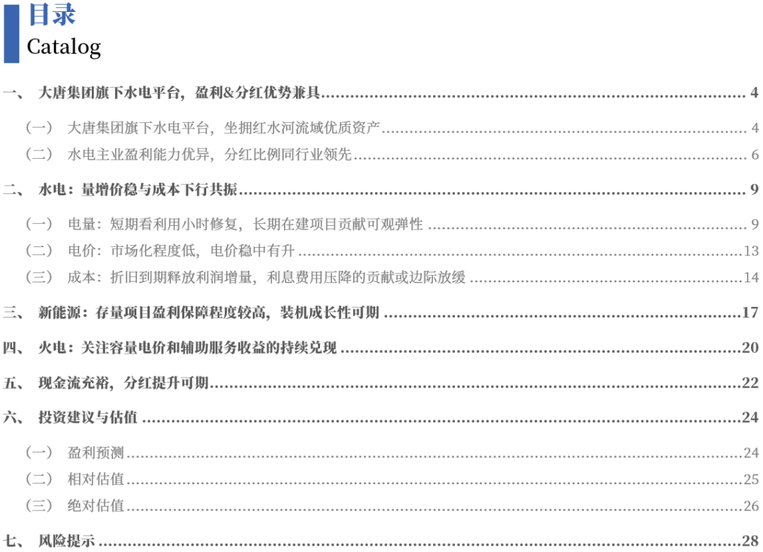 1. 大唐旗下水电平台,盈利&分红优势兼具。