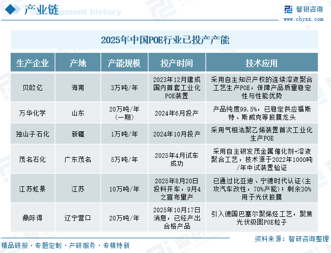 POE树脂作为高性能封装胶膜的关键原料,因其优异的耐候性、高阻水性和抗PID性能,在N型组件和双玻组件中应用广泛。然而,其供应长期被陶氏化学、三井化学、LG化学三家海外企业垄断,全球市场份额占比高达85%。受制于α-烯烃等核心原料的国产化瓶颈,POE采购成本持续高企,长期维持在2.1–2.3万元/吨。值得期待的是,国产POE正迎来突破窗口,万华化学40万吨/年装置预计2025年投产,荣盛石化(维权)、茂名石化、江苏虹景等企业也纷纷布局,预计2025年国内总产能将增至59万吨/年。尽管当前产能规模有限,但据统计,国内拟在建POE项目总产能已超过600万吨/年,覆盖万华、卫星、浙石化等40余家企业,未来有望显著改善供应结构,为太阳能电池封装胶膜行业降本增效与供应链安全提供有力支撑。