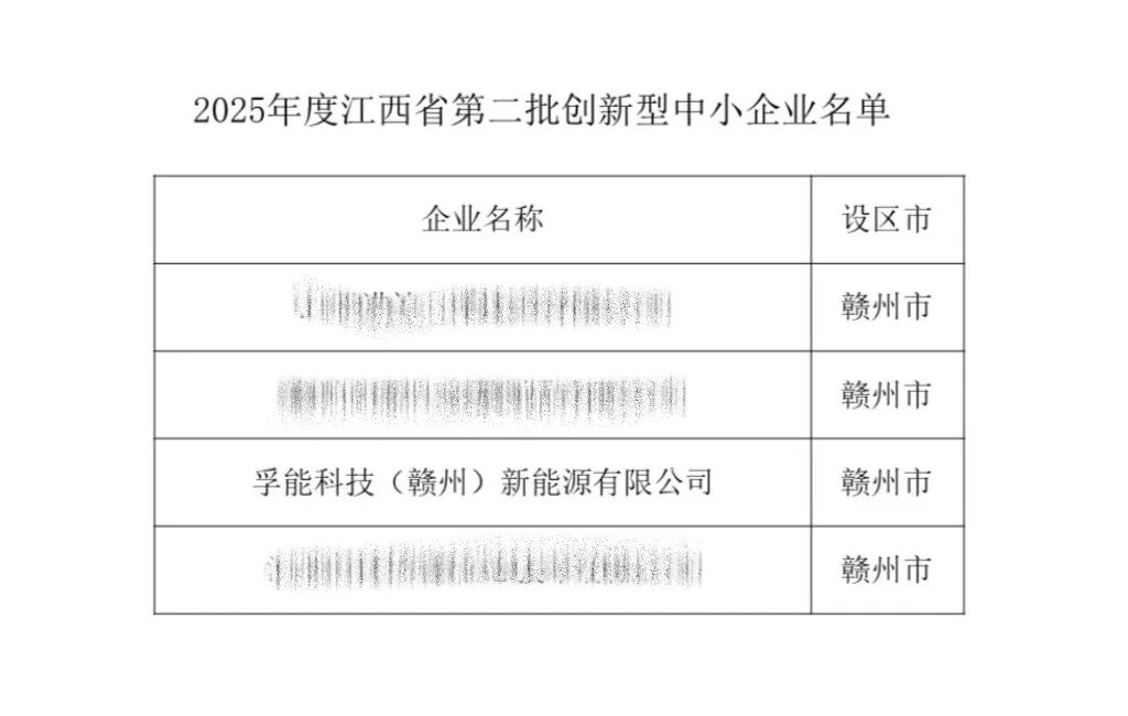 近日,江西省工信厅公布2025年度江西省第二批创新型中小企业名单,孚能科技(赣州)新能源有限公司(以下简称“孚能科技赣州新能源”)凭借在新能源动力电池领域的卓越创新实力与产业贡献,成功入选。这一殊荣不仅是对孚能科技赣州新能源技术积淀与创新活力的权威认可,更标志着其在推动江西省新能源产业高端化、智能化、绿色化转型进程中迈出关键一步。
