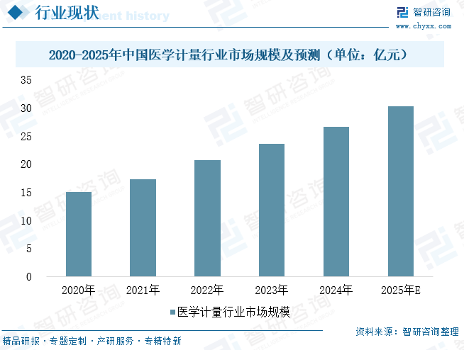 医疗行业对计量技术具有高度依赖性与严苛要求,系统广泛应用于医疗设备校准、生命体征监测及质控管理等方面。2024年国内医用计量器具注册数量达1842项,覆盖CT剂量仪、呼吸机压力传感器等多类设备。目前,全国三级甲等医院的强制周期检定设备覆盖率已提升至98.6%,医用计量产品也逐步向小型化、智能化、远程校准方向演进,以适配各级医疗机构的差异化场景。随着疾病防控、生物医药、高端医疗器械、可穿戴设备等领域对关键计量测试技术需求的不断扩展,医学计量行业实现高速发展。2024年医学计量相关市场规模已达26.56亿元,预计2025年将增至30.2亿元,精准化、全程化、合规化成为该领域发展的主要趋势。