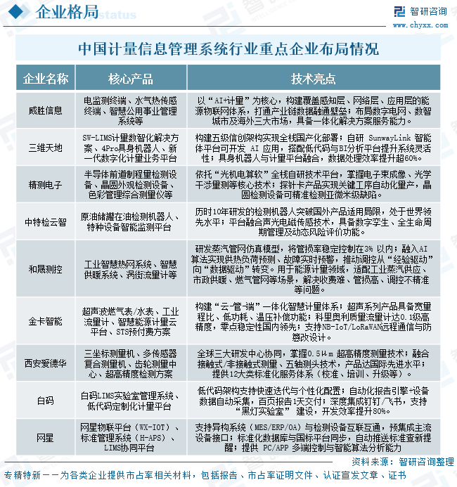 中国计量信息管理系统行业初步形成“国家队引领、民营与外资分层竞争”的立体格局。国有计量院所主导基础计量与法定检定业务,民营头部企业凭借机制灵活在工业、环境等细分领域快速拓展,外资品牌则仍占据部分高端市场。整体行业正加速从单一硬件向“硬件+软件+服务”一体化模式转型。在重点企业布局方面,威胜信息、金卡智能聚焦智慧能源计量,融合“AI+物联网”构建全链条解决方案,适配公用事业与工业场景;精测电子、西安爱德华深耕高端精密测量,突破微米乃至纳米级计量技术,服务半导体、航空航天等前沿领域;三维天地、白码、金现代与网星则聚焦实验室智能化,依托低代码平台、AI算法与跨系统集成能力升级LIMS系统,助力检测机构与企业实现合规管理与高效协同。多方力量共同驱动行业向智能化、精准化与国产化方向不断迈进。