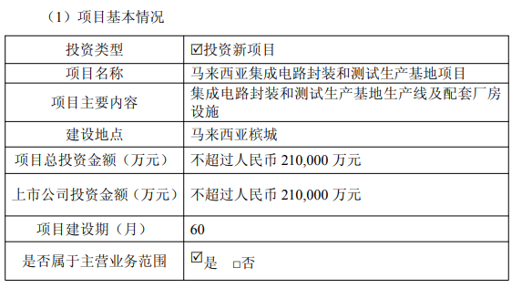 据公告披露,该项目落地马来西亚槟城,建设期为60个月。项目核心建设内容为系统级封装产品等封装产品,下游将覆盖AIoT、电源模组等热门应用领域。资金来源为公司自有资金及自筹资金,不涉及募集资金,投资主体为公司在马来西亚设立的子公司。