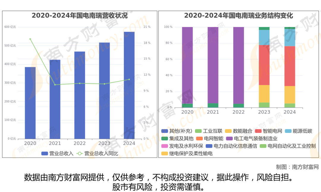 据年报数据显示(如上图),国电南瑞过去一年实现营业收入574.17亿,同比增长11.15%,近5年复合年增长率10.51%。