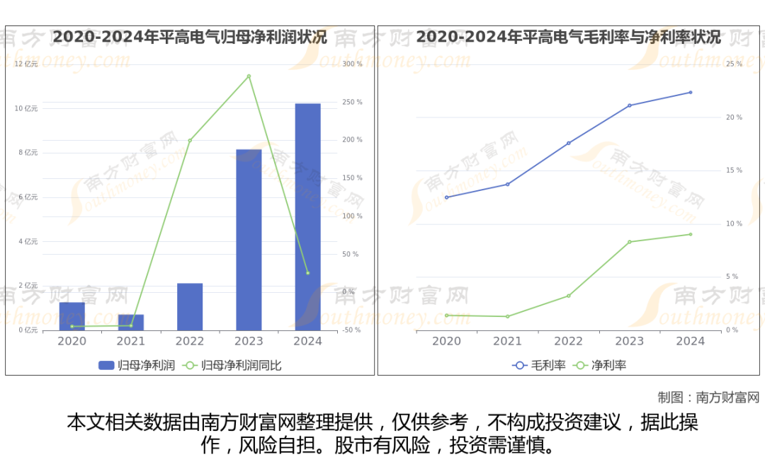 2024年公司归母净利润10.23亿元,同比增长25.43%。净利润10.23亿,近5年复合年增长率68.78%;净利率9.02%,近5年复合年增长率59.32%;毛利率22.36%,近5年复合年增长率15.67%。