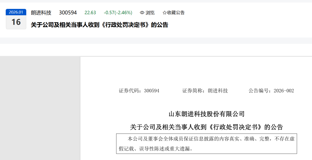 2026 年 1 月 15 日,公司及相关当事人收到山东证监局下发的《行政处罚决定书》([2026] 2 号),现将相关情况公告如下: