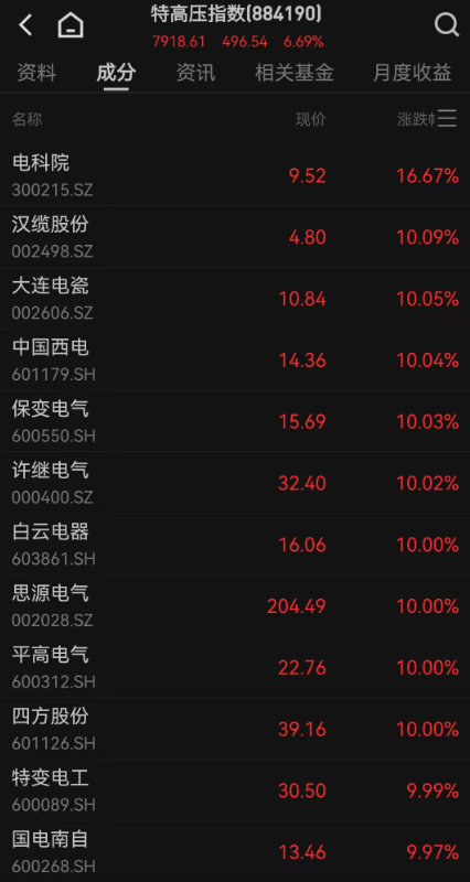 今日(1月19日),A股特高压概念强势上涨,超百亿元主力资金净流入概念板块,概念股中汉缆股份、保变电气、中国西电等12股涨停,特变电工、汉缆股份封单资金均超过3亿元。