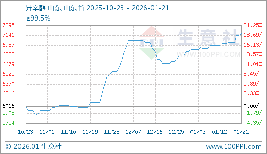 据生意社监测,异辛醇01月21日最新价格7166.67元/吨,最近60天上涨17.81%。