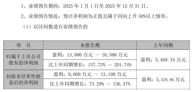 青松股份(300132)1月22日晚间发布2025年度业绩预告,预计归属于上市公司股东的净利润为1.30亿—1.65亿元,比上年同期增长137.73%—201.74%。报告期内,国内化妆品行业整体消费呈稳步复苏态势,公司客户订单需求有所增长,带动公司营业收入同比增长;预计非经常性损益对当期净利润的影响约为3400万元(2024年同期为-71.52万元),主要系公司148亩土地项目处置完成所致。
