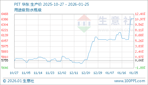 据生意社监测,PET01月25日最新价格6400.00元/吨,最近5天上涨5.22%,60天上涨10.63%。