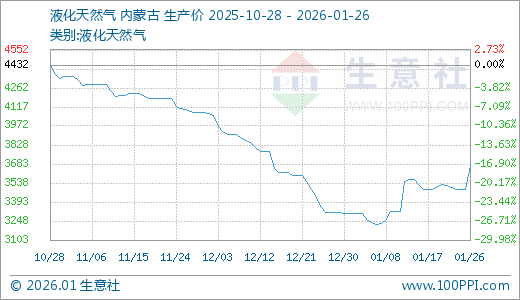 据生意社监测,液化天然气01月26日最新价格3668.00元/吨,最近5天上涨4.15%,10天上涨5.04%,15天上涨10.48%,20天上涨13.77%。